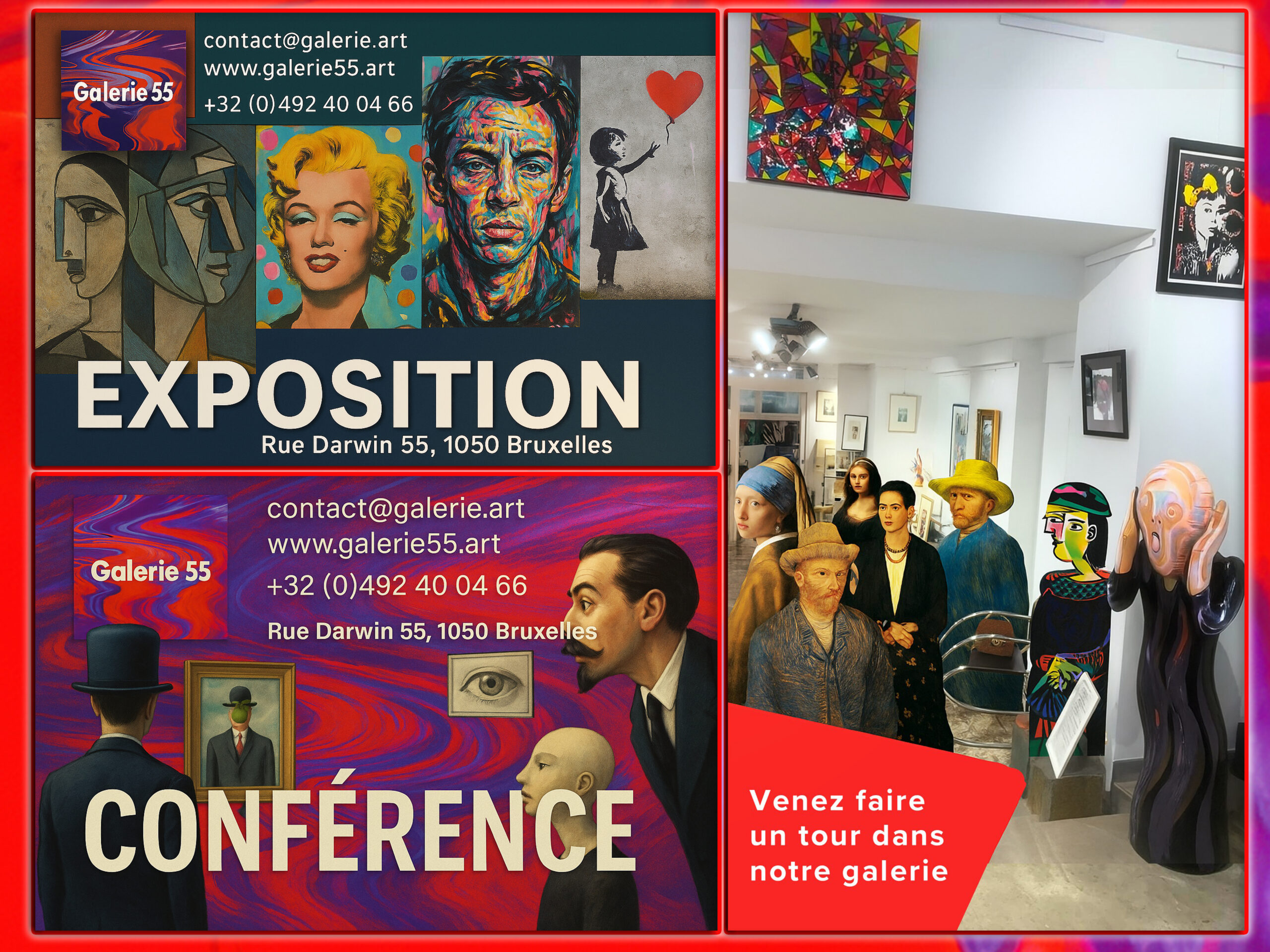 La Galerie 55 organise régulièrement des expositions et des conférences qui permettent au public de voir des œuvres emblématiques des grands mouvements artistiques du XXème siècle et d’en comprendre les fondements.